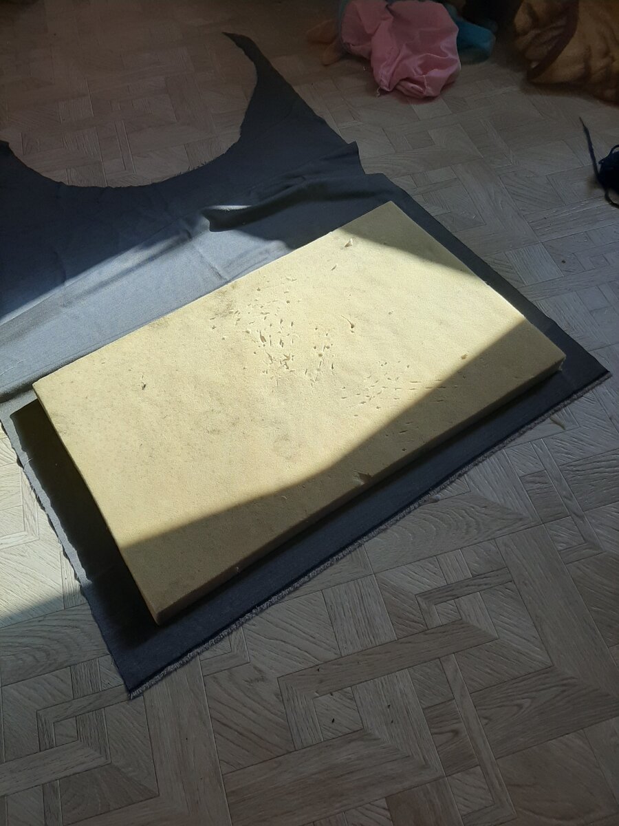 Ткань оказалось довольно таки скользкой пришлось приживулить к поролону.
