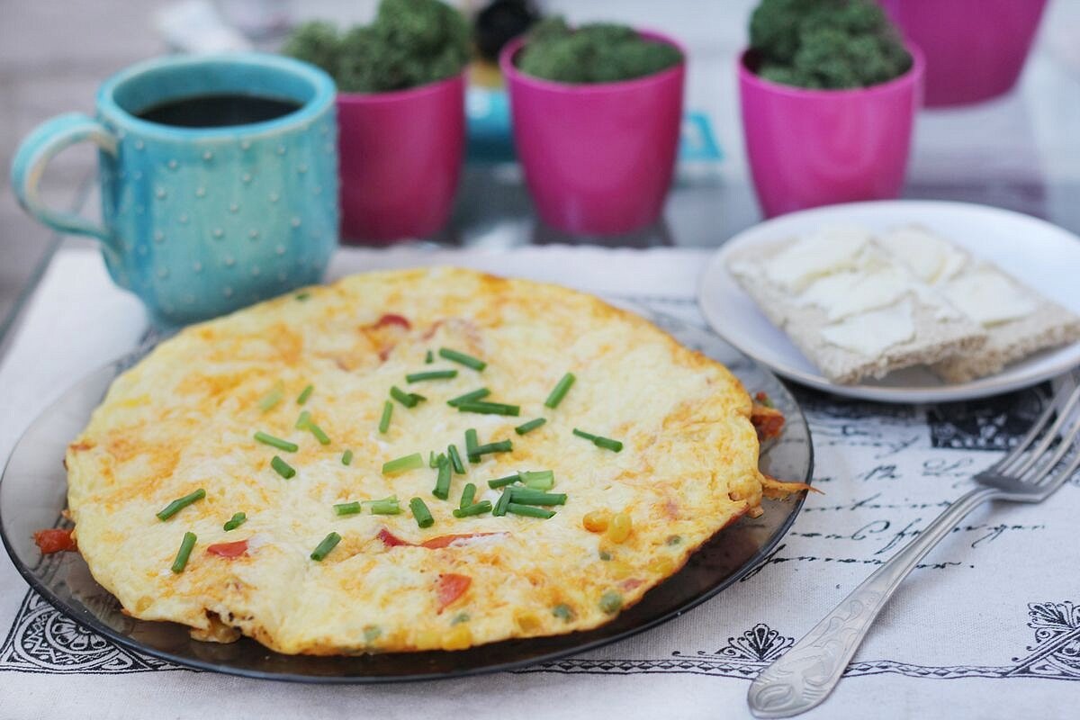 Утренняя трапеза важна и незаменима. Она дает стартовую энергию для начала дня. Мозг работает намного продуктивнее, если еда полна витаминов и белков. А что может быть лучше натурального источника белков, органического источника витаминов. Все достоинства хорошего завтрака сочетают в себе яйца с овощами. Сыр и ветчину добавим для пикантности вкуса.