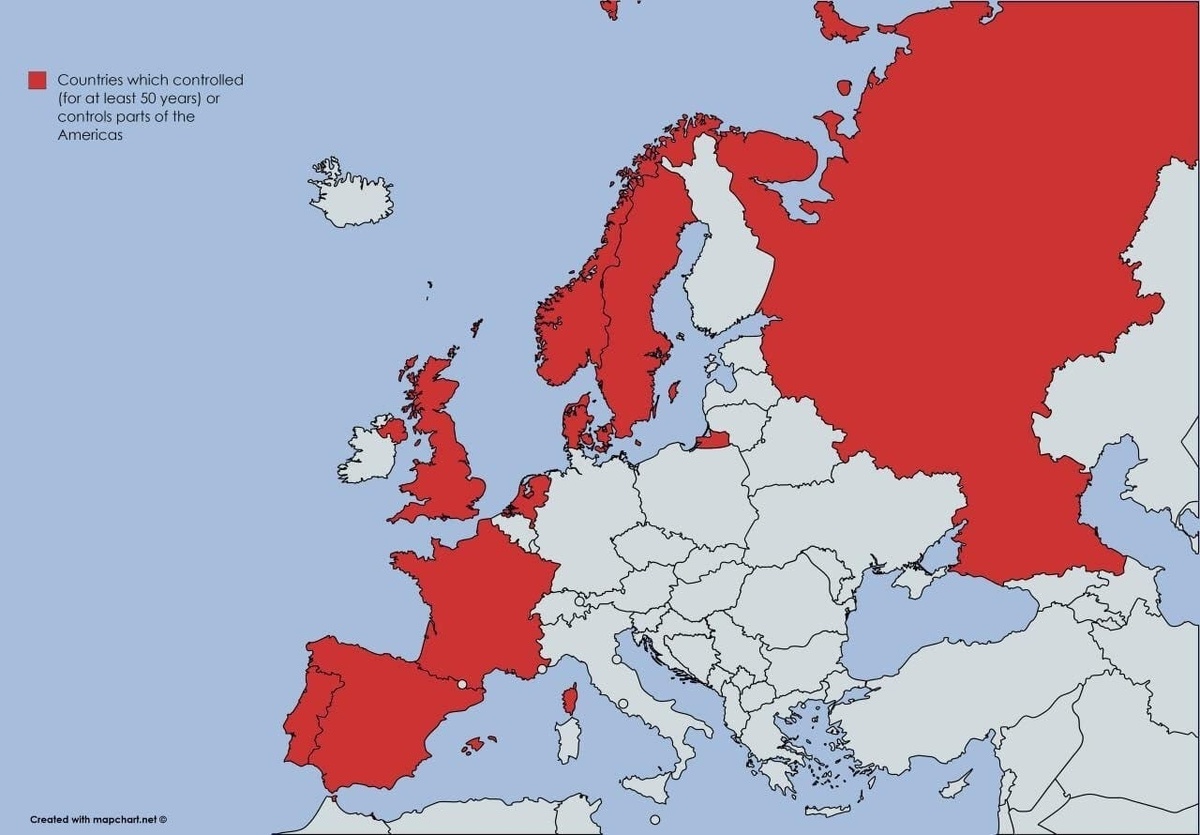 В число страна, которые владели колониями, входят: Португалия, Испания, Франция, Великобритания, Нидерланды, Дания, Норвегия, Швеция и Россия.