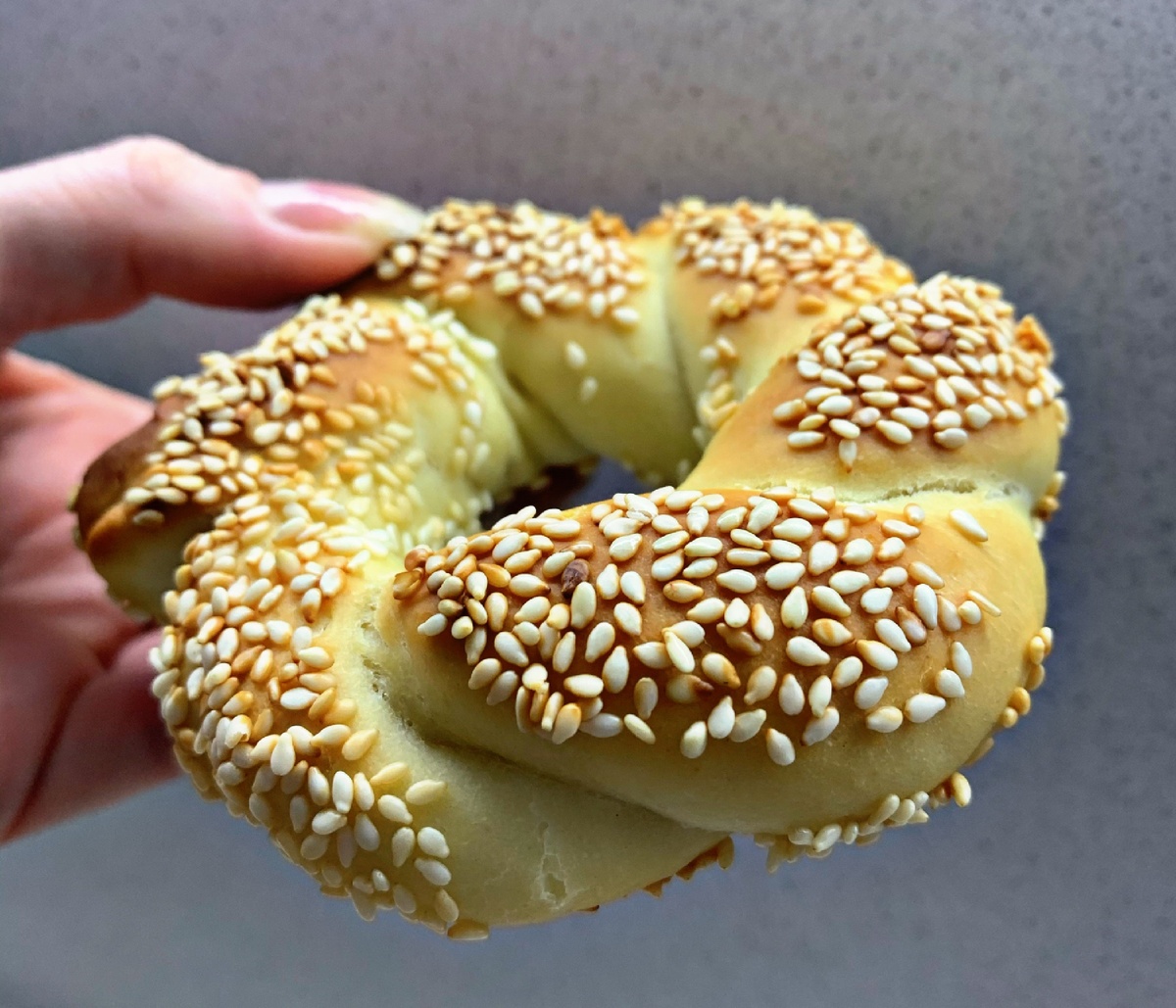 Прекрасные турецкие булочки с хрустящей корочкой и воздушным тестом внутри 😋 рецепт очень простой и распространён не только в Турции, но и Греции, Болгарии, Черногории. Этот рецепт булочек, кстати постный. Видео рецепт есть на моей страничке в Инстаграмм ⠀ Я начинаю дружить с тестом, что меня несказанно радует, особенно когда прикладываешь много сил и любви) для меня пекари, да и вообще те, кто легко работает с тестом - боги спустившиеся с Олимпа 😇😀 ⠀ 🌾 Ингредиенты 🌾 ⠀ ➡️ Мука пшеничная 300 гр ➡️ Вода тёплая 155 мл ➡️ Дрожжи сухие 4 гр ➡️ Сахар 15 гр ➡️ Соль 5 гр ➡️ Масло растительное 25 гр ➡️ Мёд, кунжут для обсыпки ⠀ Муку просеять, добавить дрожжи. В тёплой воде растворить сахар и соль. Я начала вымешивать тесто в планетарном миксере ( немножечко схитрила, да 🤫). Смешиваем воду и муку. Как только тесто собралось в комок, начинаем вводить масло. Не переживайте если тесто кажется тугим, масло должно впитаться. Я месила тесто уже руками💪🏻 на протяжении 15 минут, пока оно не ст