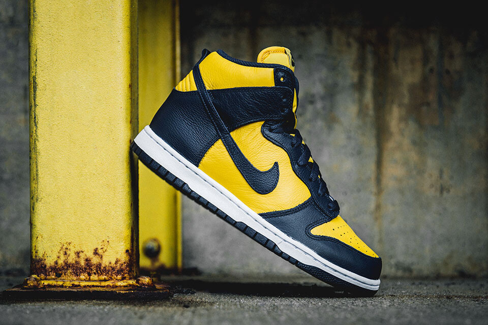 23 сентября 2020 (завтра) года нас ожидает переиздание популярной расцветки 2016 года для Nike Dunk High под названием "Michigan". Конечно, высокие данки не пользуются таким спросом, как низкие, но из-за расцветки они могут хорошо зайти на перепродажу. Первые Мичиганы 2016 года сейчас имеют цену на вторичном рынке в районе $300-350.
