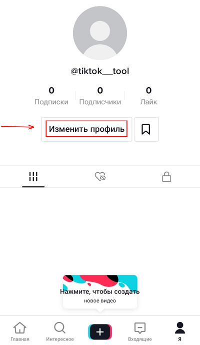 Запустите TikTok и зайдите на свой аккаунт. Щелкните на «Изменить профиль» – так вы попадете в настройки.