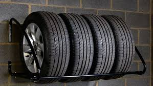 - Для лучшей сохранности колёс их стоит хранить на специальных полках, стойках и подставках. Такие места для хранения должны иметь ровную поверхность и сглаженные углы, потому что если резина долго лежит на острой поверхности, на ней остаётся след. Протекторы, стандарт которых не превышает 205 миллиметров, можно укладывать вертикально друг на друга. Но не стоит накладывать стопки выше двух метров. Более крупные колёса укладываются горизонтальными рядами