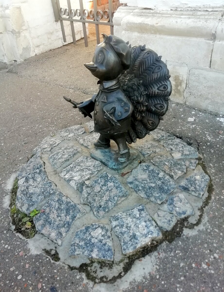 Первое, чем удивил Серпухов, это лилипутские памятники. Непривычно обнаруживать арт-объекты прямо под ногами! Таких фигурок здесь больше 10, они установлены у разных знаковых мест: на вокзале, у художественного музея, у театра. Туристы могут устроить себе квест по поиску всей этой семейки павлинчиков. В городе вообще царит культ павлинов: Всё началось в конце XVII века, когда двух павлинов подарили Высоцкому монастырю. Они там прижились, а их разведение стало такой яркой фишкой города, что попало на герб. Продолжим разговор о животных. Увидела издали двух каменных львов, подумала, что там какой-то пафосный бутик. Но нет: Порадовали и другие вывески: А ещё Серпухов поразил вежливыми обращениями к вандалам: На кладбище кораблей, кстати, нас самих чуть не приняли за вандалов. Пока нас не прогнал один сердитый дядечка, удалось сфотать вот такое изречение: А теперь вопрос на засыпку: что символизируют следующие граффити? Они похожи на карты из Имаджинариума, но, на самом деле, несут в с