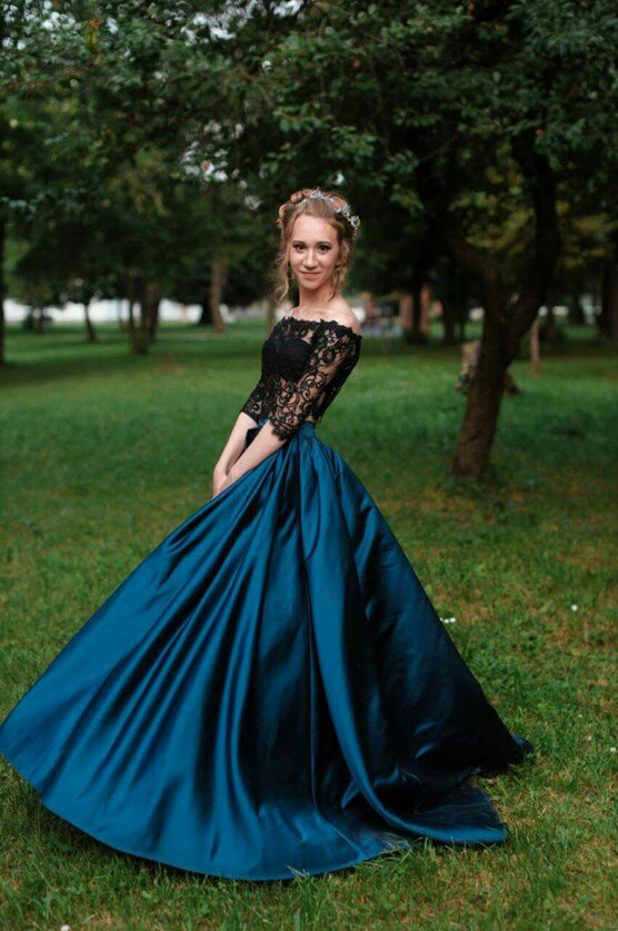 В первых выпусках своего канала я уже писала о том, что практически все вещи мне шили на заказ. Поэтому, платье на торжество я придумывала сама. Корсет из шифона и блесток, юбка - "полусолнце" до пола. И все это ярко-синего цвета "Электрик". Ко всему этому еще были задуманы темно-синие тени "Металлик" и длинные ногти (тоже синие). Ну и вкус у меня был тогда...)))