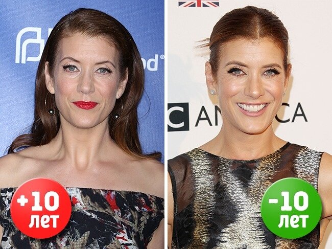 Делает моложе: Замаскировать темные круги под глазами недостаточно. Нанесите консилер (на тон светлее основного тона лица) на внутренние и внешние уголки глаз, на уголки губ, на внешнюю сторону ноздрей (где начинаются носогубные складки) и подбородок.