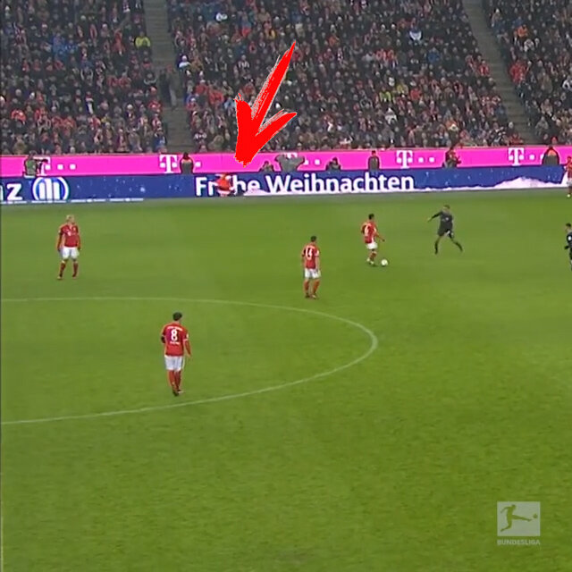Дело было в бундеслиге. Тогда еще игрок Баварии, Тьяго, посмотрев на левую бровку, увидел человека в красной форме и отдал передачу на него, но он не понял, что это был Санта на рекламном баннере. Посмотреть как это было можно по ссылке или по фото ниже.