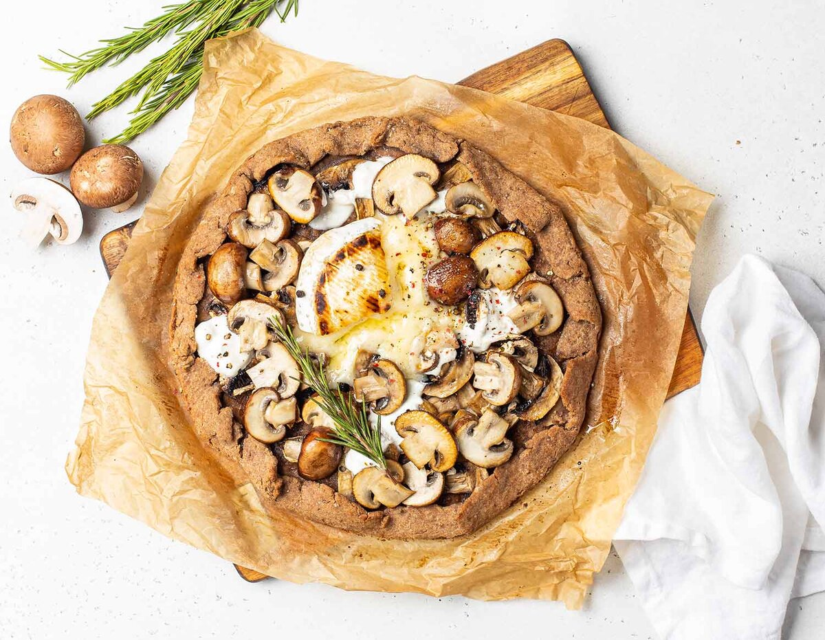 У розмарина отрываем листочки и посыпаем. Кусок сыра бри кладем в центр галеты⠀