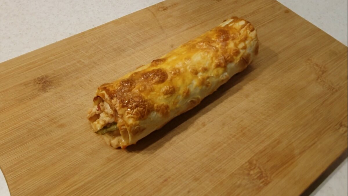 Лаваш разделить на две части, добавить начинку, подвернуть один край, и завернуть в рулет