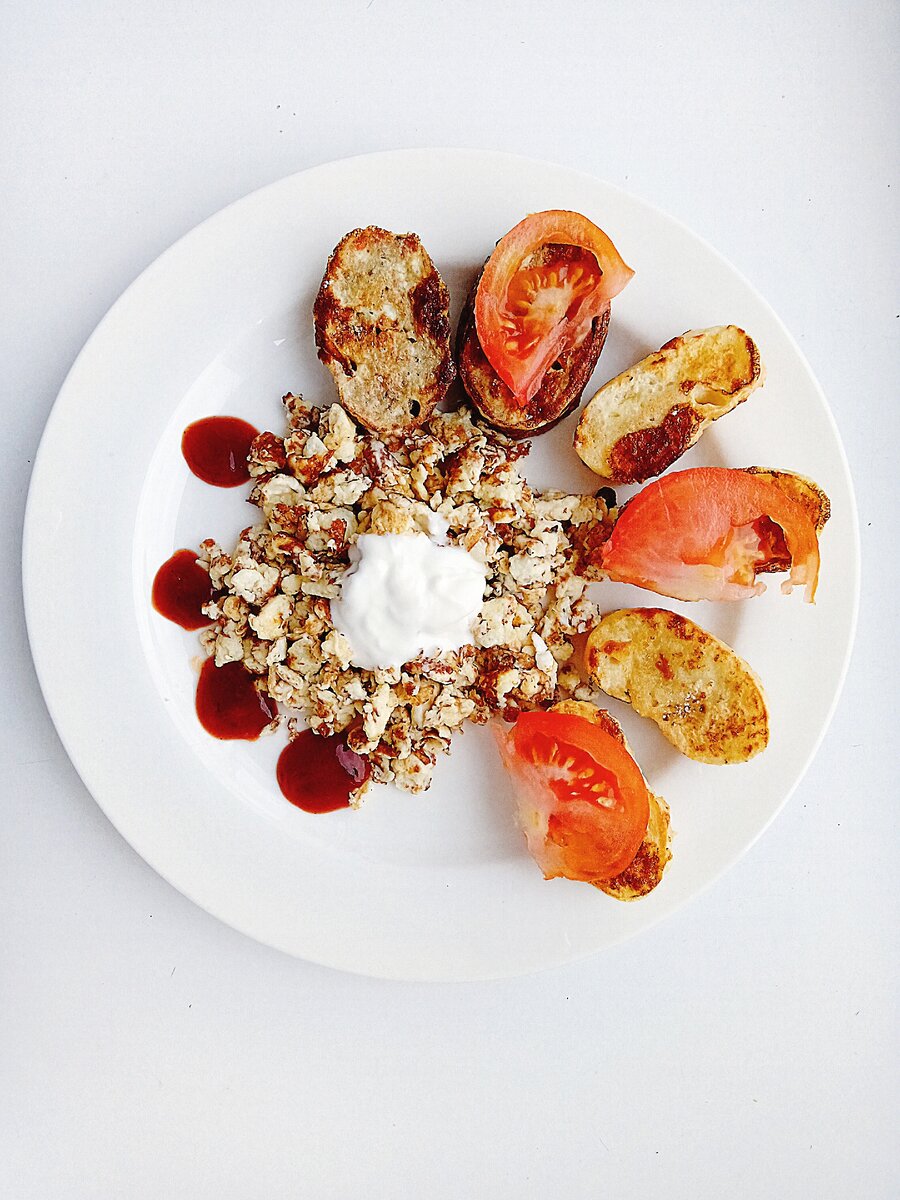 При подаче можно добавить помидорку, сметанку, кетчуп.