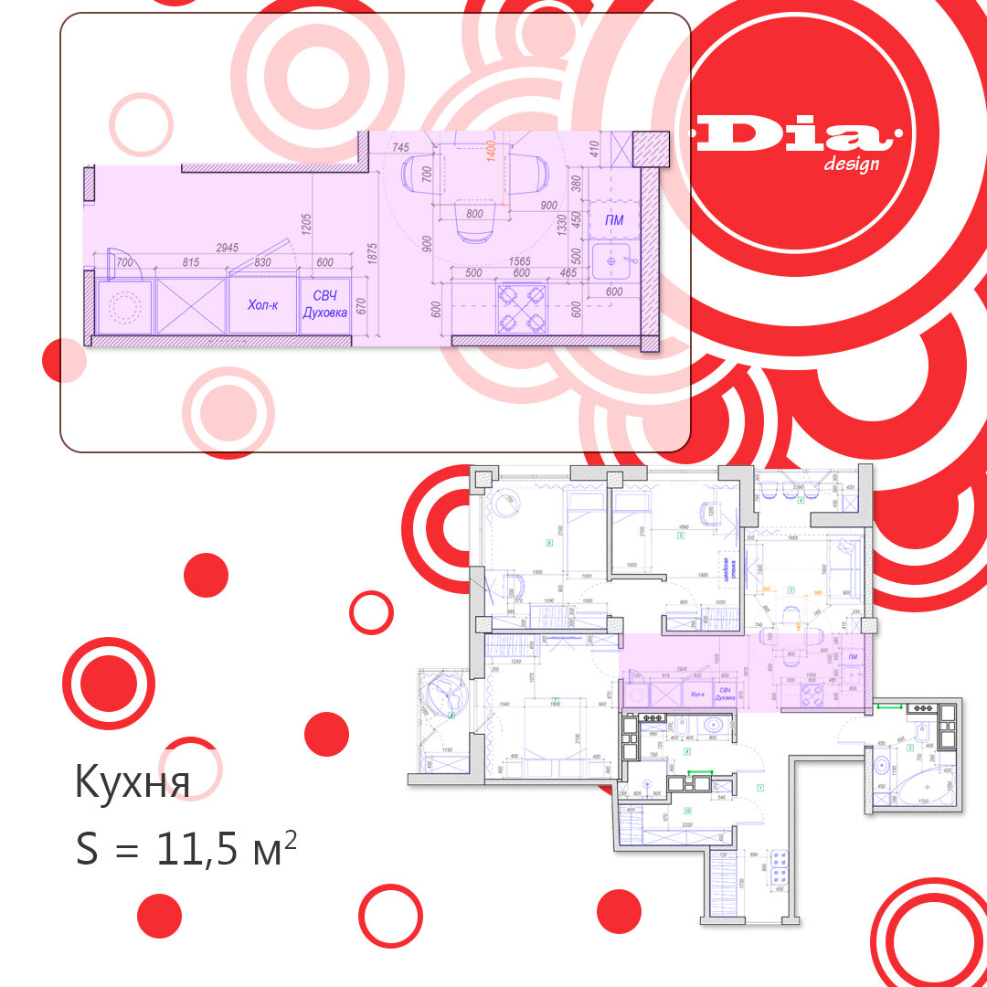 Дизайн кухни 11,5 м.кв.