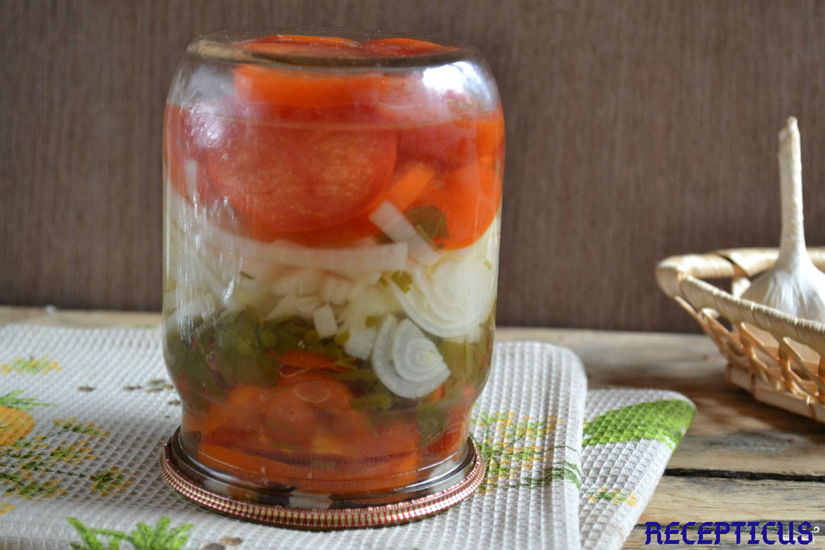 Консервированные салаты и закуски с помидорами всегда обладают отличным вкусом и не оставляют равнодушным ровным счетом никого. В этом рецепте хочу рассказать, как приготовить закуску из помидоров с луком на зиму.