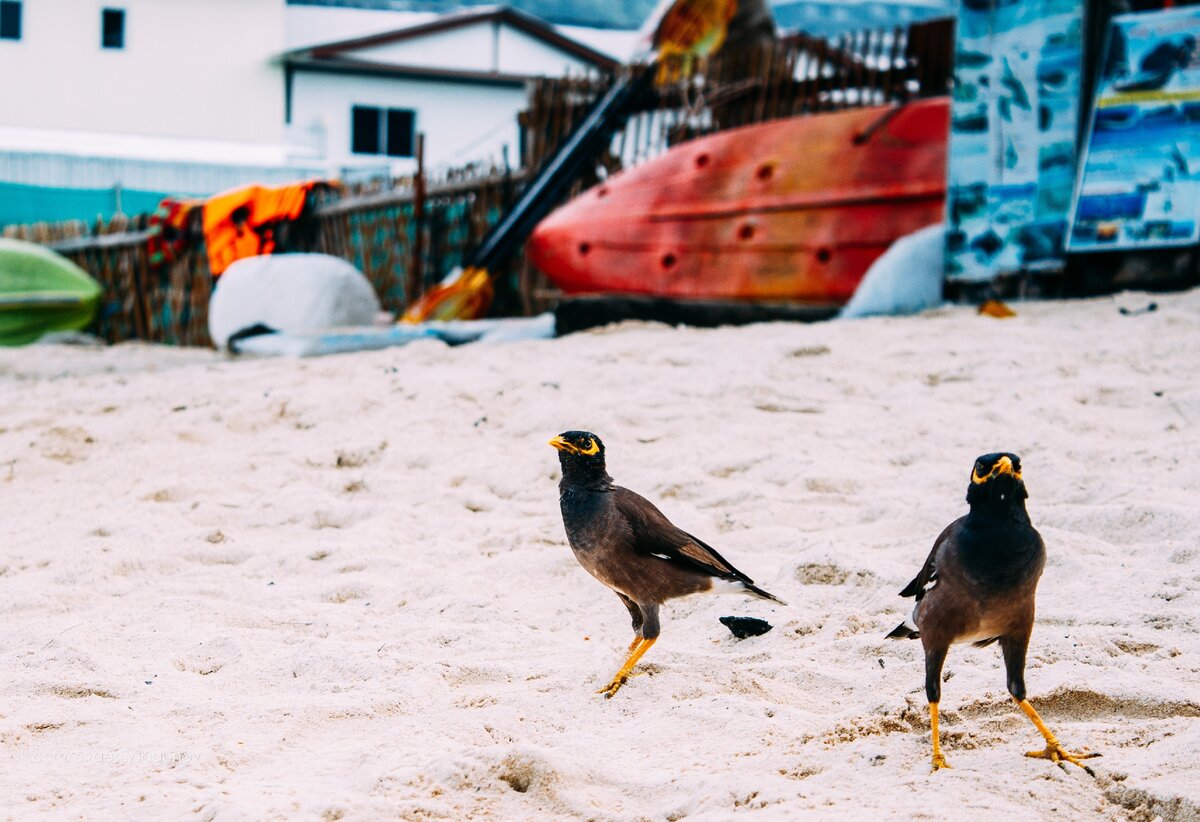 Птички на берегу моря, на острове пхипхи. Очень странные, похожи на наших воробьев, но повыше и суровый у них взгляд.