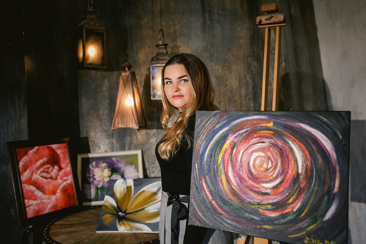 Её ещё детские рисунки отправлялись на выставки, а несколько работ, созданных во время учёбы в колледже, около полугода украшали интерьер одного из питерских артистических кафе.