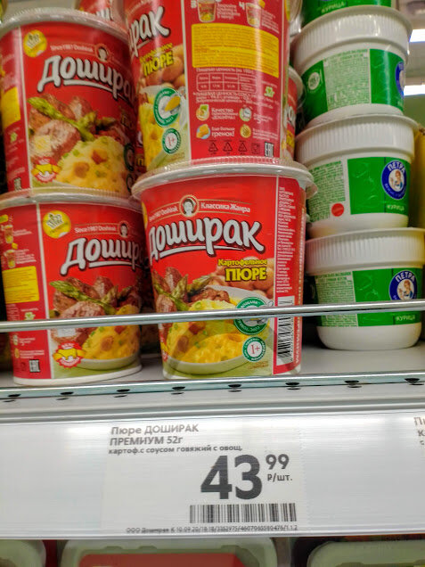 Вы сильно удивитесь, когда узнаете цену Доширака, Ролтона или других обедов быстрого приготовления в пересчете на килограмм сухого веса. Для этого я отправился в ближайший магазин и зафиксировал цену на небольшую упаковку быстровозводимой пюрешечки марки Доширак