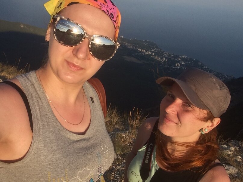 Проснувшись утром, мы решили ехать в сторону Ялты и где-нибудь в районе Симеиза заночевать. Но в планы опять вмешался кто-то свыше. Билетов на автобус мы не добыли, пошли снова автостопить. На трассе повстречали таких же горе-путешественников без транспорта - два мальчика и девочка шли за нами с вокзала и встали ловить попутку чуть поодаль. Первая машина нас довезла до поселка Рыбачье, где мы провели на дороге часа два. Жара была неимоверная, машин ноль, а тут еще и снова повстречали тех ребят - они внаглую встали перед нами. Подошла к ним, почти вежливо объяснила, что негоже так поступать, ребята ушли. В итоге нас подобрали парень с девушкой, которые ехали в Ялту. Парень оказался мотоциклистом, рокером, так что снова мы притянули к себе «своих» людей. В Ялте заехали с ними искупаться, после чего ребята любезно нас подкинули до поворота на Мисхор, откуда я планировала подняться на Ай-Петри.