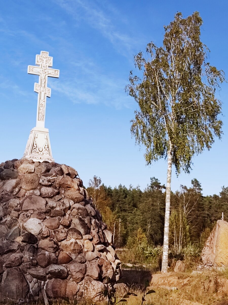 Перед поселком стоит охранный крест, так популярный в последнее время около населенных пунктов.