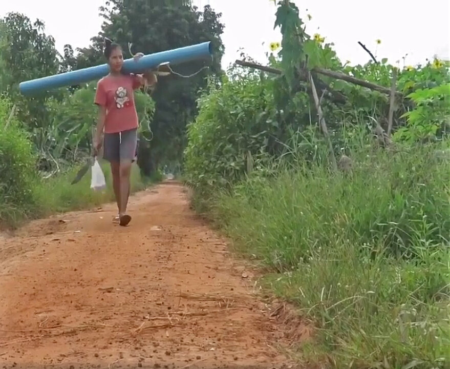 Для того, чтобы приступить к рыбалке, нужно взять кусок трубы метра полтора и запаять ее с одной стороны. Вьетнамцы поступают проще: они распиливают с одной стороны трубу на полосы, нагревают пластик, пока он не станет мягким, и загибают