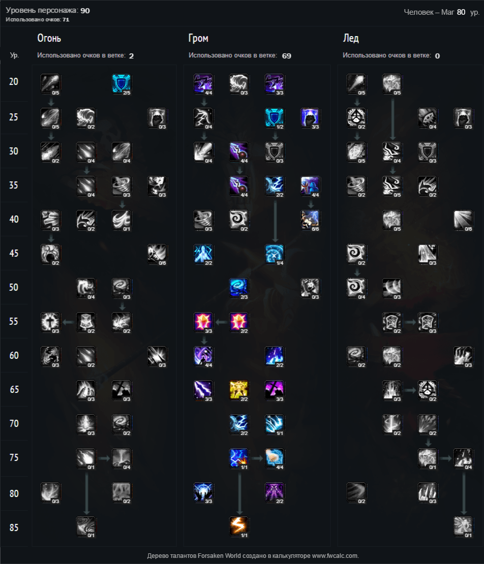 В раскидывании талантов вариантов много, все зависит от стиля игры, усилить неистовою грозу или силу магии (светлая или темная вера соответственно), усилить щит на поглощаемый урон или на прирост атаки, но основным у грома остается неистовая гроза со своим высоким шк, оцепенение, паралич, прерывание чтения заклинаний.