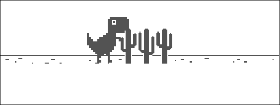 Чтобы начать игру нужно нажать на пробел. После этого динозавр побежит. Смысл игры простой - нужно перепрыгивать через кактусы и преодолевать другие препятствия. Как только вы столкнетесь с чем-нибудь, игра закончится.