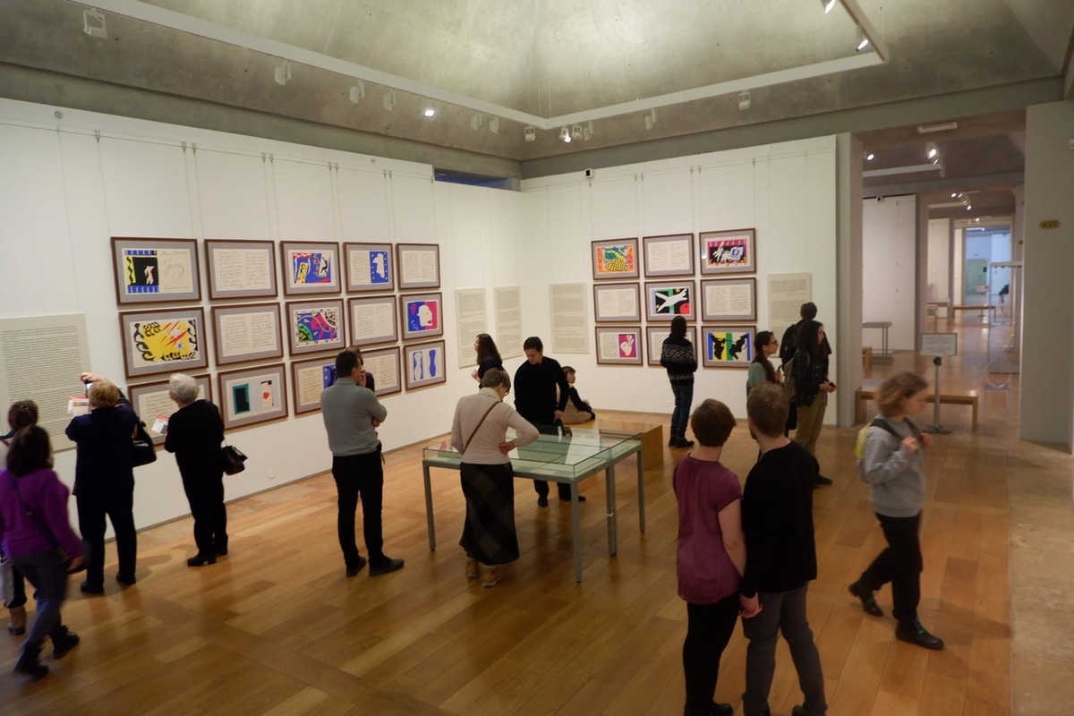 Недавно я посетила интересную выставку в Главном штабе Эрмитажа. Там я была с друзьями. Выставка посвящена Анри Матиссу под названием «Джаз» к 150-летию со дня рождения художника. На снимках изображена, как сама выставка, так и люди, посещавшие её. Кадры расположены с разных ракурсов, чтобы показать выставку глазами людей.