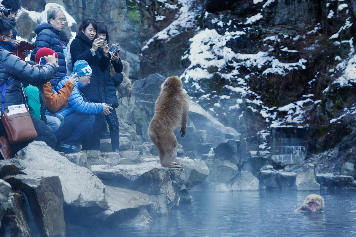 Открытый в 1964 году парк Jigokudani (Джигокудани)считается крупнейшей в мире резервацией снежных обезьян. В заповеднике обитает 160 японских макак, которых называют снежными обезьянами . В суровых климатических условиях, где снег лежит до четырех месяцев в году, обезьяны купаются в термальных источниках – Онсенах, принимая горячие ванны.