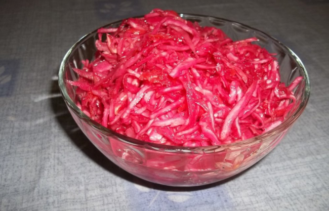 Капуста частый гость, как в нашей повседневной жизни, так и на праздничном застолье. Продукт достаточно универсален и его можно использовать сразу с грядки, или засолить со свеклой. Наши предки могли заготавливать в больших количествах в бочках, современные квартиры не могут нам этого позволить. Капуста со свеклой маринованная быстрого приготовления, рецепт в банке лучший вариант, позволит насладиться полезным, вкусным продуктом.