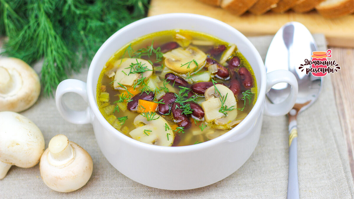 Постный суп с грибами и фасолью густой, сытный и очень ароматный. Просто, быстро и вкусно!
