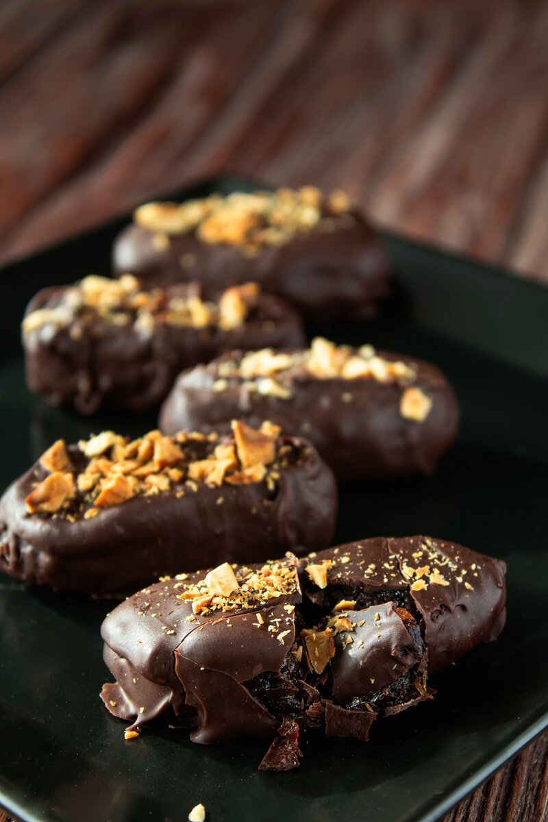 6. Достать заготовки и с помощью вилки обмакнуть в шоколад. Остатки удобно снимать о края миски.