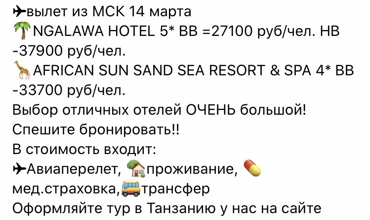 25 октября стартует первый прямой рейс на африканские Мальдивы с вылетом из Москвы (Шереметьево), продолжительность 10 ночей + 2 перелет, и так каждые последующие десять дней, полётную программу обозначали вплоть до Апреля 2021 года. Уверенно!