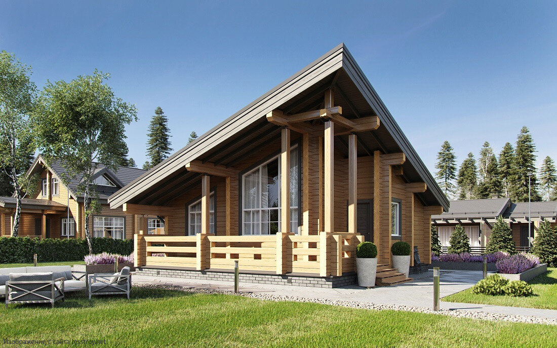 Конечно, баня на самом деле не треугольная, а вполне нормальная - квадратная. Однако, такая наклонная крыша создает интересный эффект. Баня с этого ракурса становится похожа на нос корабля.