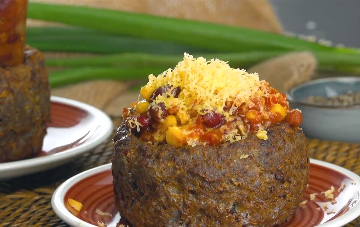 Такие вы точно не пробовали Предлагаю испробовать нереально вкусный рецепт котлет с начинкой испеченых в духовке. Приготавливаем фарш : Берём 600 грамм говяжьего фарша Добавляем 2 луковички лук-шалот 2 зубчика чеснока 100 грамм сухого белого хлеба, или панировачных сухарей. Щепотка корицы 80 грамм сыр Пармезан 2 яичных желтка Солим, перчим по вкусу 1/2 чайная ложка тмина Чательно все перемешиваем Лепим средний шар что бы помещался в ладони И кладём в формачку Берём баночку и вставляем в середину с фаршем, до самого конца. Готовим начинку Берём бабы 100 грамм 4 помидора 80г. Кукурузы, 1 красная луковица 30 грамм сладкого перца 1 чайная ложка перца Чили Солим перчим по вкусу Всё чательно перемешиваем Выкладываем начинку в баночку и ставим в духовку 160 градусов 30мин. После приготовления достаём баночку из фарша высыпает начинку внутрь котлеты посыпаем сыром и зеленью приятного аппетита!