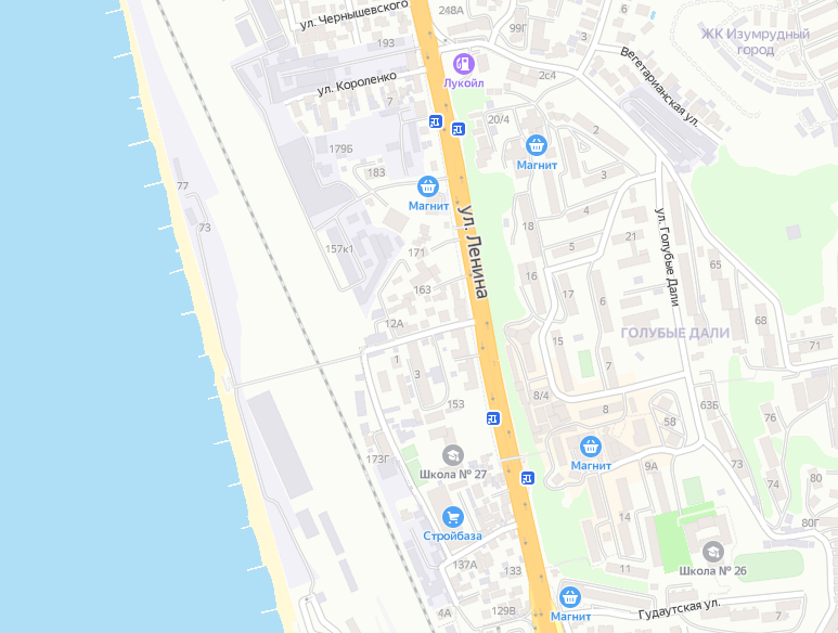 Другой популярный район для проживания в гостевом доме - это Мирный. Гостевые дома в Мирном после Олимпиады растут как грибы после дождя. Главное преимущество - близость к Олимпийским объектам и "Сочи Парку". Открываем карту.