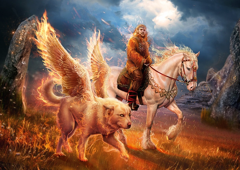 В начале времен , когда Сварог ударил молотом по 6ел-горюч камню Алатырю, из лучи, высеченной из камня, родился Огненный Бог Семаргл, а также все небесные Ратичи - воины Сварога.