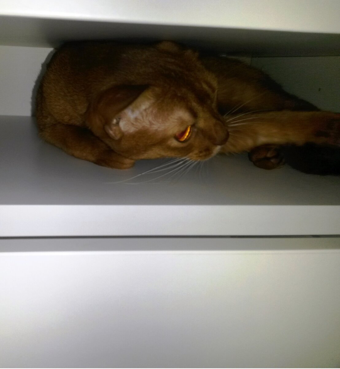 Поэтому утром кошки наспех поели и выстроились около комнаты. Дальше мы с ними проверяли комплектность коробок. Все полки были измерены шажками и количеством помещающихся кошек в длину. Друг
