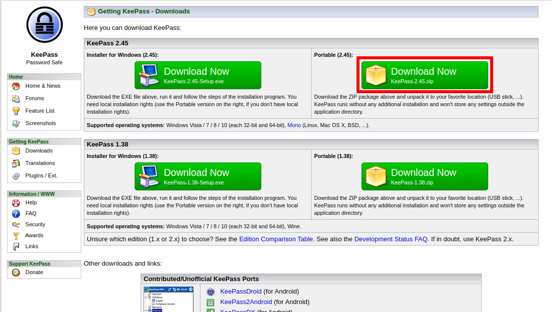 Далее в инструкции используется портативная версия KeePass 2.*.
