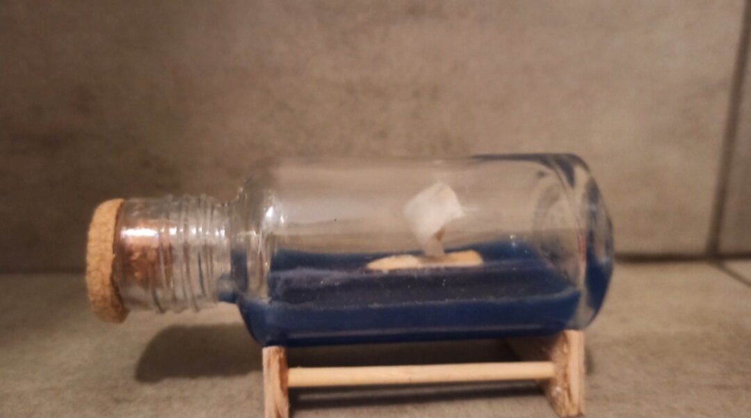 Заталкиваем кораблик в горлышко, двигая его в центр. Ждём затвердевания эпоксидки.