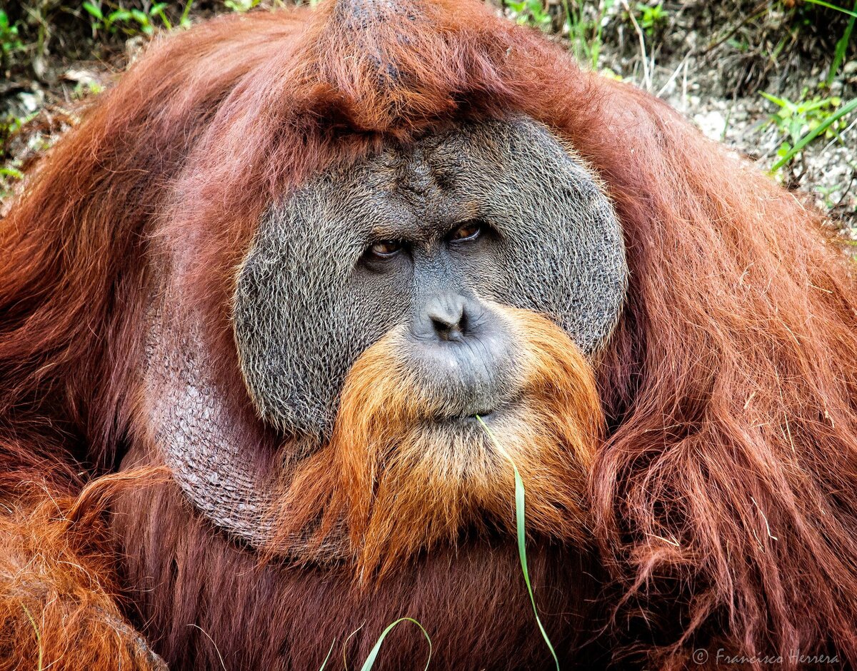 Эти животные являются равноправными жителями Земли, оказавшимися в бедственном положении. Орангутанг в переводе означает «лесной человек». В древнем мире их действительно считали людьми, прячущимися в лесу, чтобы не оказаться в рабстве. Стоить отметить, что правильно говорить орангутан, название было видоизменено в российском языке на привычное орангутанг. Описание Животное относиться к семейству гоминид, как гориллы, шимпанзе и человек. Это самые умные обезьяны, если не считать людей. Генетически они самые близкие к людям животные. У них, как и у человека, 32 зуба. Раньше животное населяло всю территорию Юго-Восточной Азии, сегодня их можно встретить разве что на островах Борнео и Суматра. По подсчетам ученых, орангутангов осталось около 40 тыс. из 3 миллионов. Рост взрослой особи может достигать 1.5 м, а вес – 100 кг. Это самые большие древесные обезьяны. Животные настолько привыкли к жизни на дереве, что практически не спускаются, даже, чтобы попить воды. Орангутангу хватает жидкост