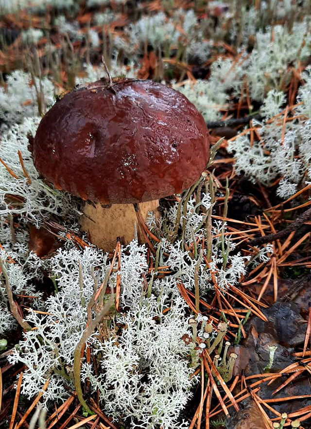 На сухом белом оленьем мхе-ягеле белые грибы растут в огромном количестве: