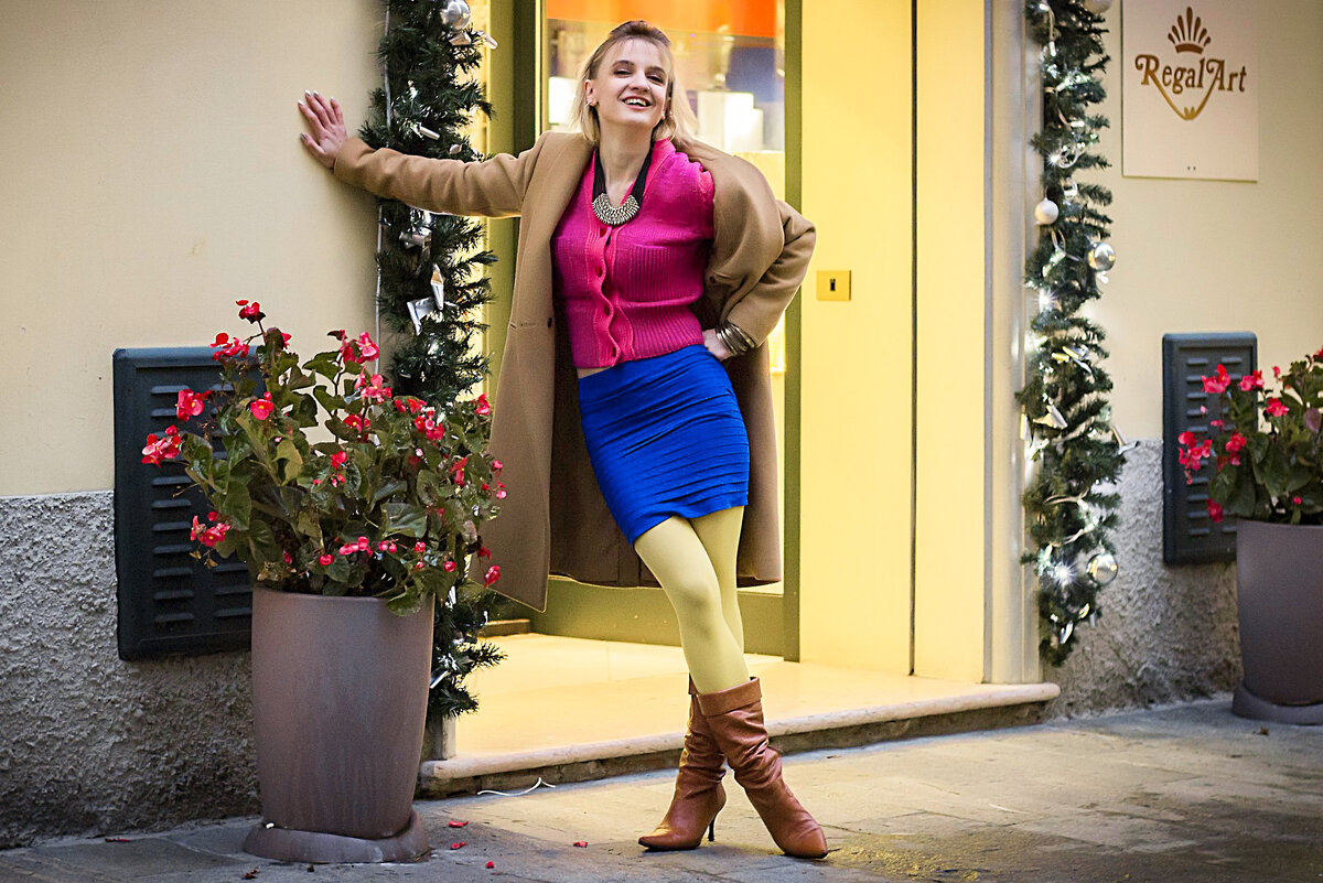 Татьяна очень жизнерадостная и активная девушка, постоянно влипает в передряги и странные истории. Признаюсь, общаться с ней было целое удовольствие. Голова полная сумасшедший идей и всегда готова их реализовать. Так, сегодня мы реализовали фотосессию в стиле девяностых на улицах Италии. А что из этого получилось смотрите ниже.