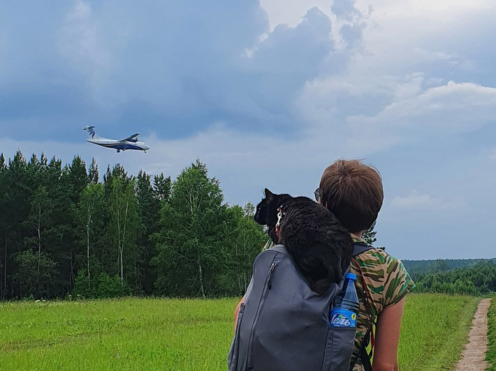 Однажды мы ходили фотографировать самолеты с котом. Странная, конечно, компания, согласна. Но кот был (и есть) бро своему хозяину, они всегда вместе. И разделить свое новое хобби он тоже хотел со своим бро. Это был тот самый случай, когда проще уступить, чем объяснять, что таскать 5 км по лесу 6 кг кота такое себе удовольствие. Кот не собака, сам не пойдет, не смотря на то, что хозяин в него