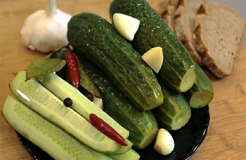 Малосольные огурцы с чесноком и зеленью быстрого приготовления