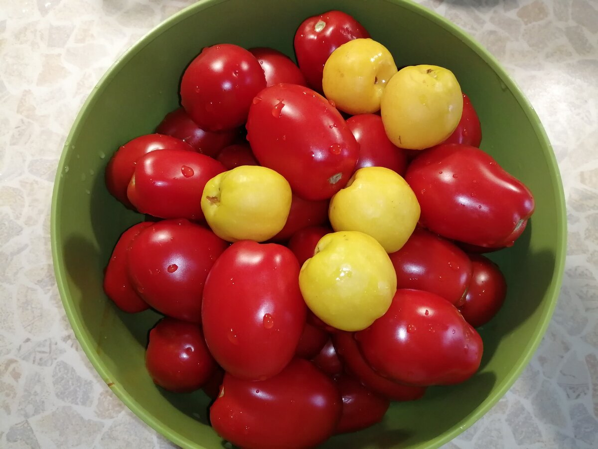 Помню много лет назад меня угощали мочёными помидорами с айвой, было восхищена вкусовыми особенностями данного рецепта, настолько вкусно и необычно, что помниться наелась их вдоволь, а вот сам рецепт так и не удосужилась записать. О чём сожалела многие годы. Буквально на днях, мне на глаза попался схожий рецепт, и я решила сделать так понравившиеся когда-то помидоры. К тому же, все ингредиенты у меня имеются. Помидоры, несколько спелых плодов айвы, чеснок, болгарский перец и много зелени.