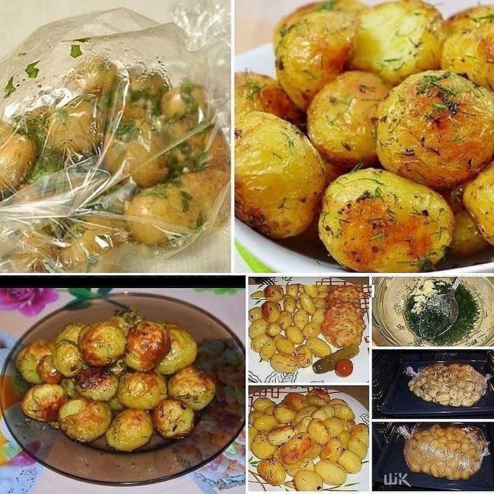 5. Перекладываем картофель в пакет для запекания, защипываем его или завязываем. Для того, чтобы пакет при нагревании не лопнул, делаем в нем иголкой несколько проколов.