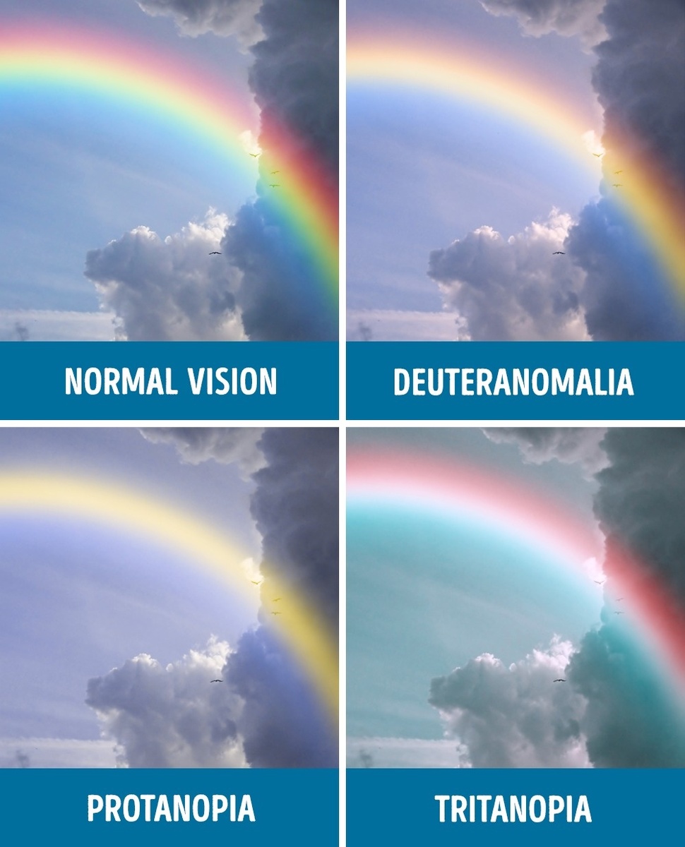 Цветоаномалия, или аномальная трихромазия - аномальное восприятие цветов, составляет около 70% среди врожденных расстройств цветоощущения. Основные цвета в зависимости от порядка расположения в спектре принято обозначать порядковыми греческими цифрами: