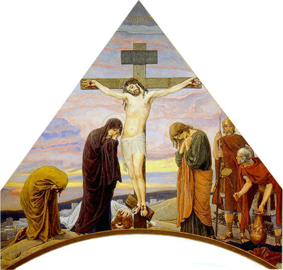 С Ней, в тоске невыносимой,Чей прообраз свят и чист,Ученик Его любимый –Иоанн Евангелист!