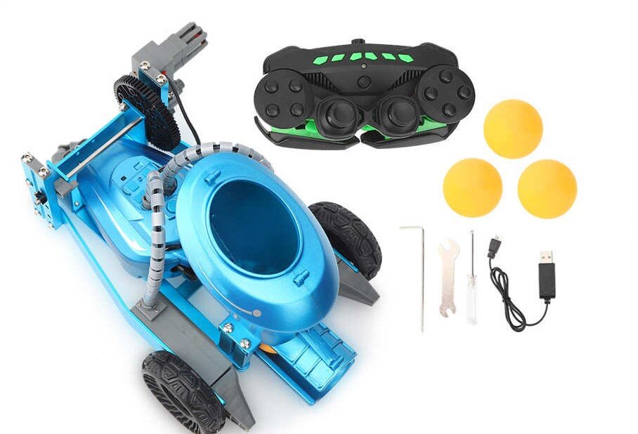 Настраивается она при помощи специального идущего в комплекте пульта дистанционного управления. Помимо робота с пультиком, посылка включает в себя элементы для его сборки, а также USB кабель для зарядки и 3 мячика.