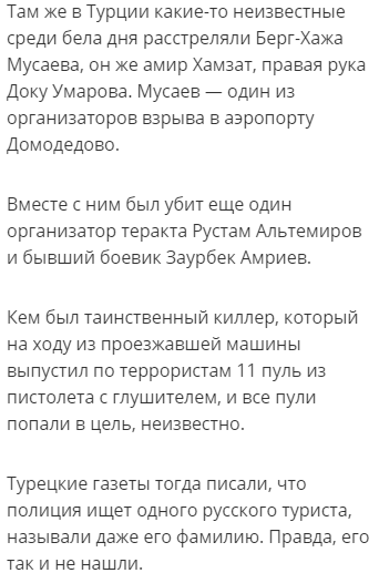 Чуть не забыл. В начале статьи один пример случая, как предположительно российские спецы ликвидируют террористов. Думать тебе, читатель!