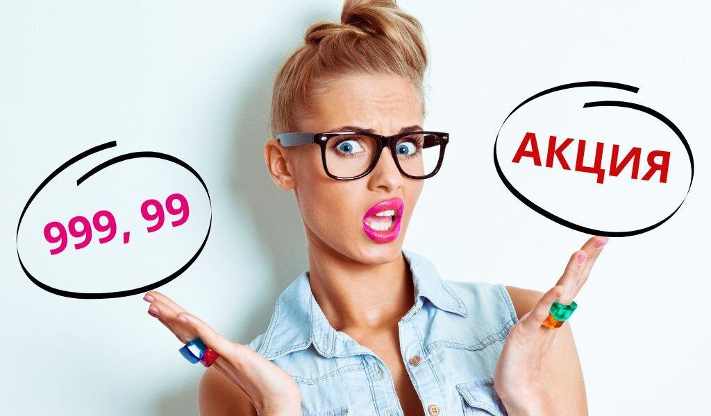 9 — любимая цифра маркетологов: 999 рублей и 99 копеек вселяют чувство уверенности, что ты тратишь все-таки не 1000 рублей, а намного меньше. Одно из маркетинговых исследований выявило, что люди лучше реагируют на ценники с цифрами без острых углов, поэтому цифры 7, 1 и 4 лучше не использовать.