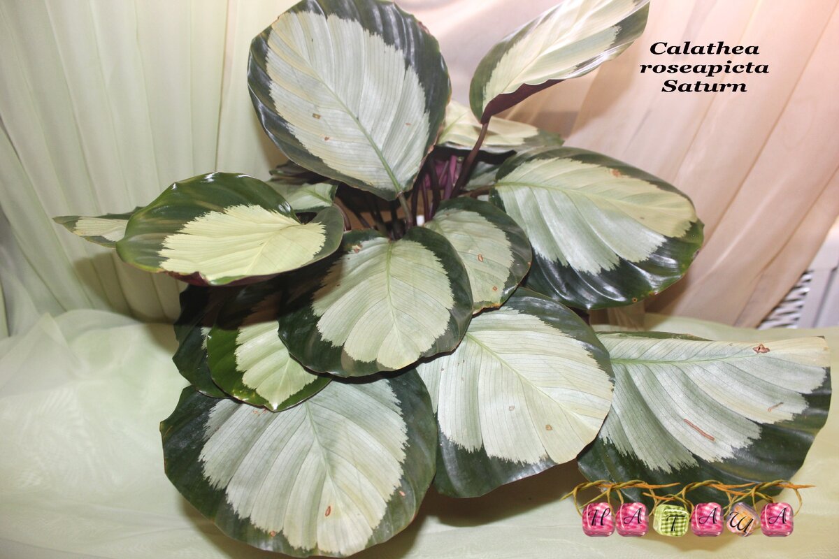 Calathea roseopicta 'Saturn'. Спорное название, очень. То же самое, что Корона, но цвет центра листа серебристый, а не зеленый.